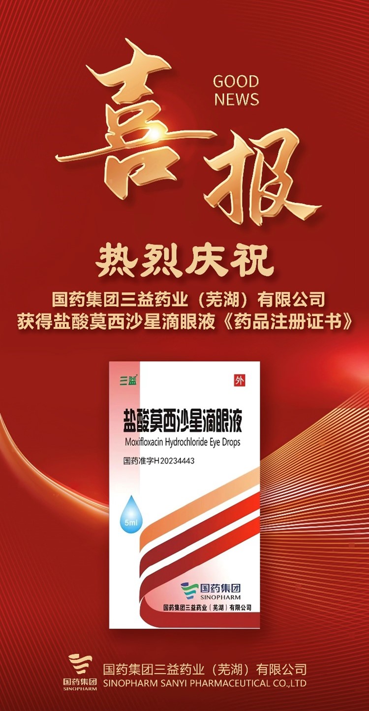 近日,国药三益收到国家药品监督管理局核准签发的盐酸莫西沙星滴眼液《药品注册证书》,并按新4类批准生产视同通过一致性评价。